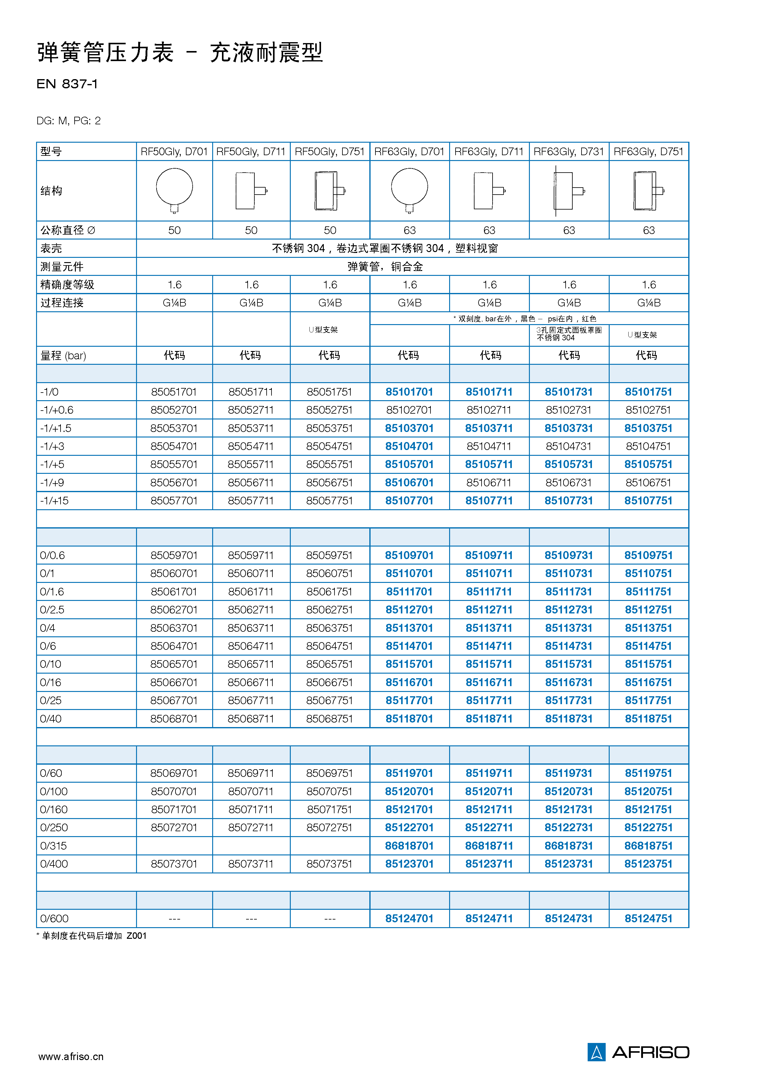 量程 (EN 837–1/5) |