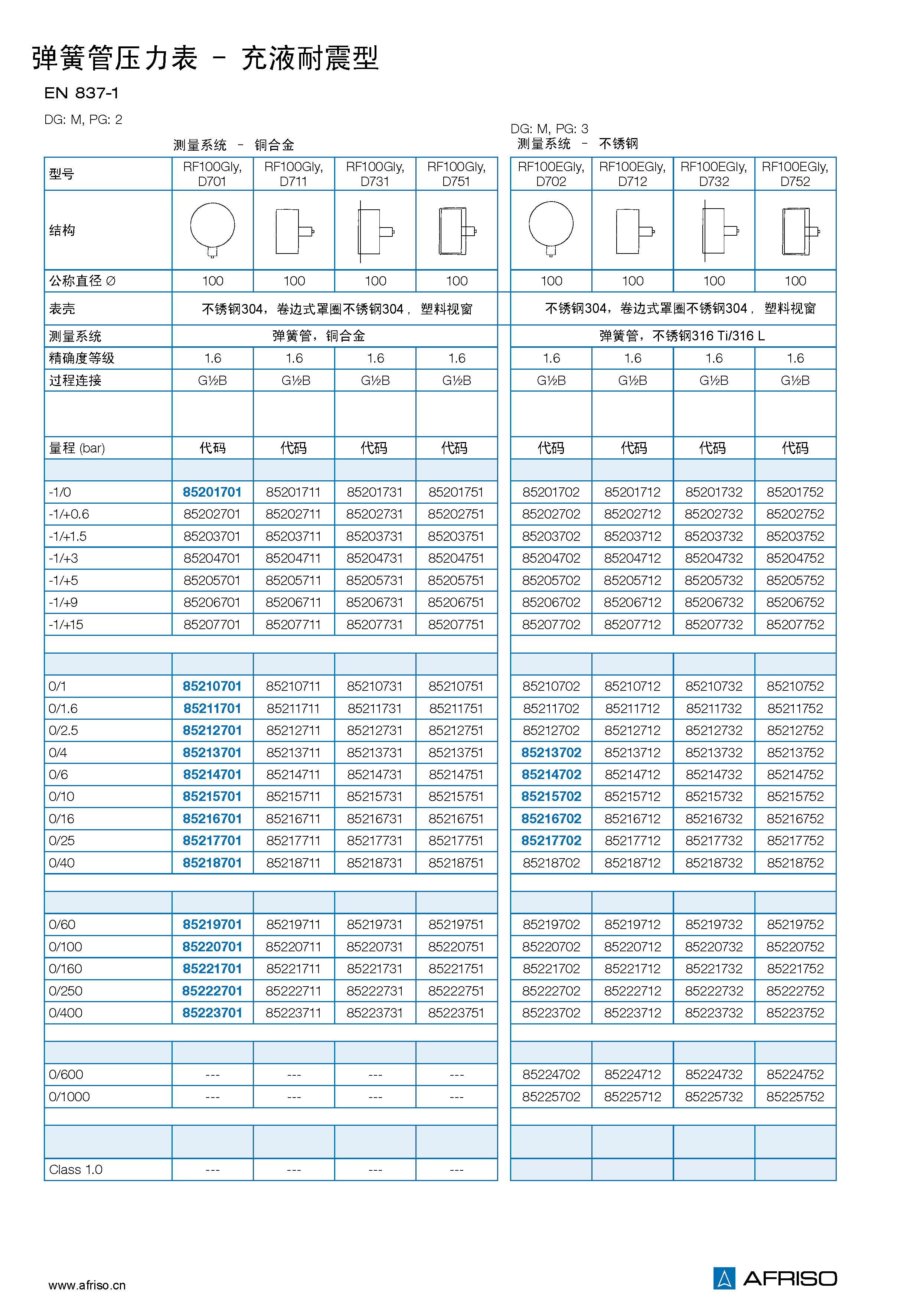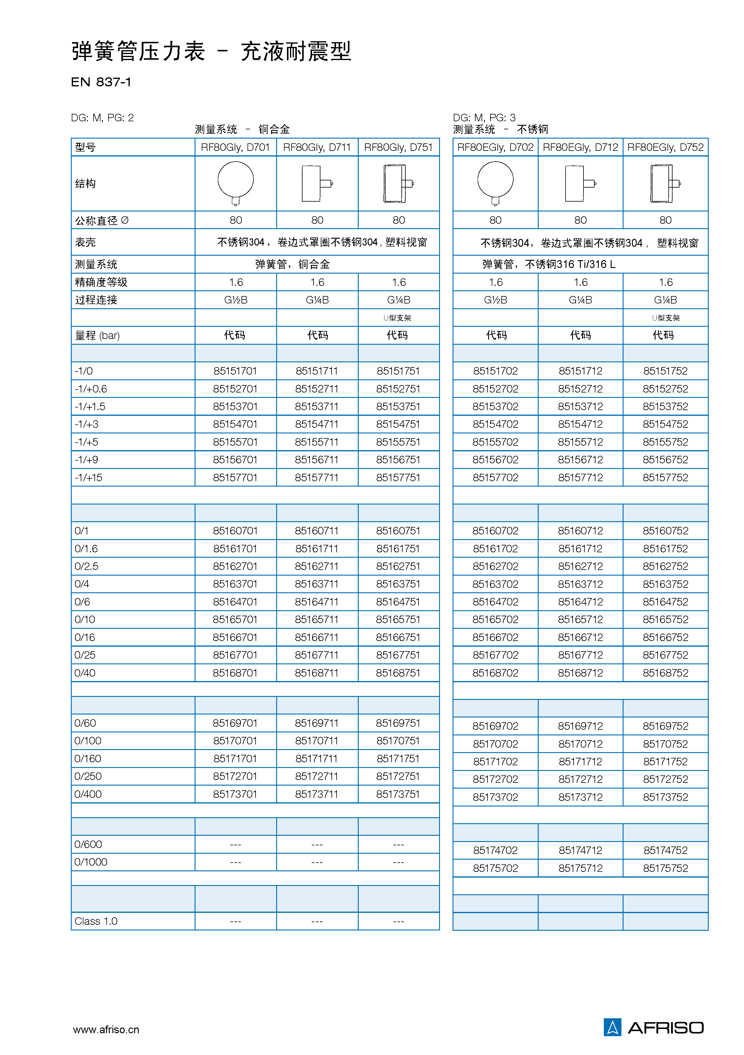 量程 (EN 837–1/5) |