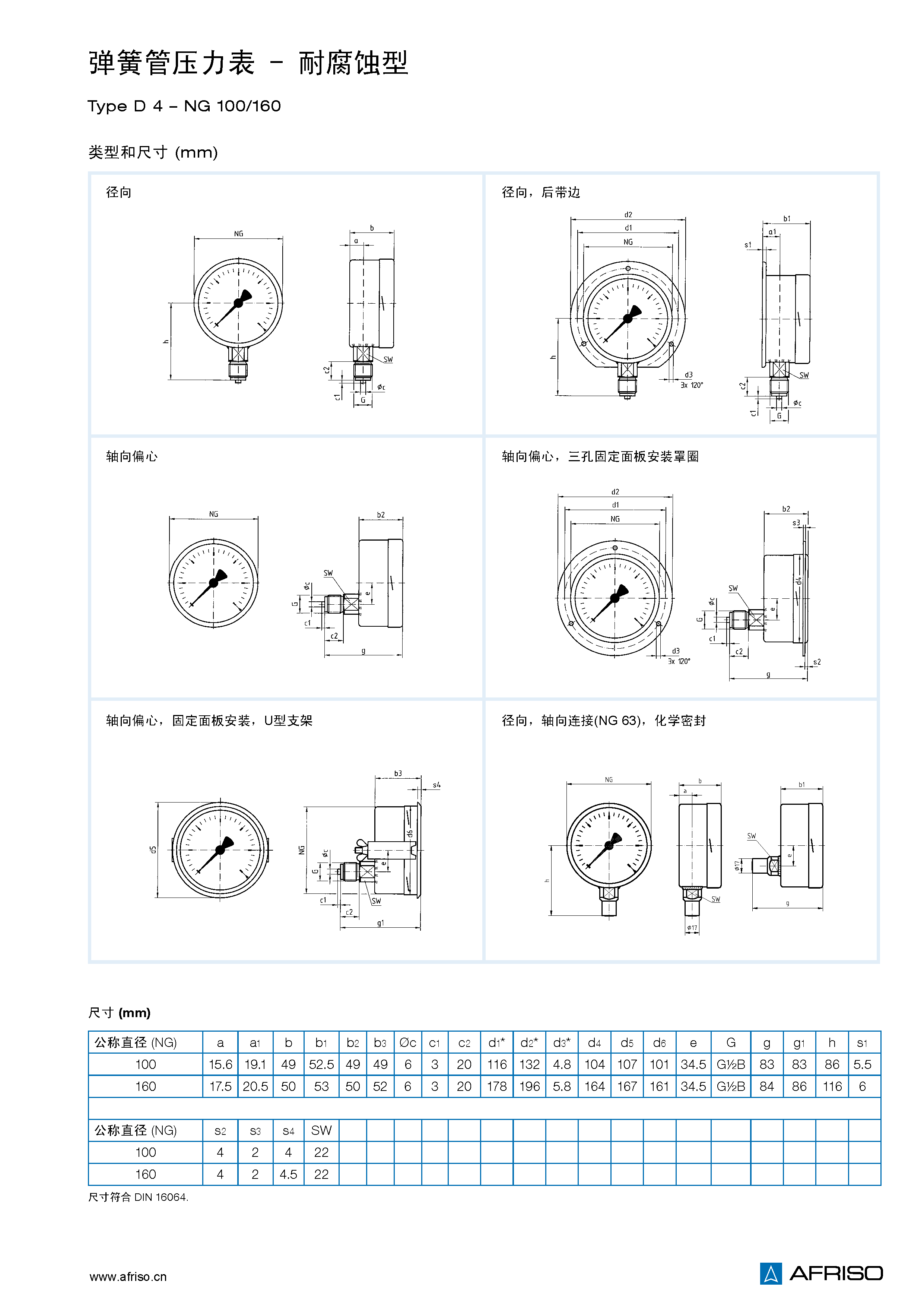 -0.1/0 MPa到-0.1/+1.5 MPa NG 100 0/0.06到0/100 MPa NG 160 0/0.06到0/160 MPa |