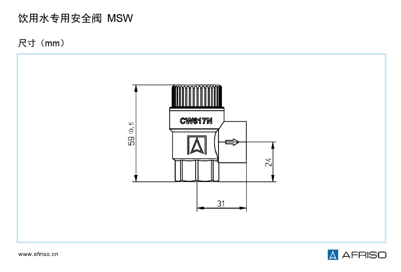 閥體: 銅CW617N 本色或鍍鎳 閥帽: PA6,藍色 密封件: 飲用水專用型MSW:EPDM 彈簧: 彈簧鋼絲EN10270-1DH(D) |