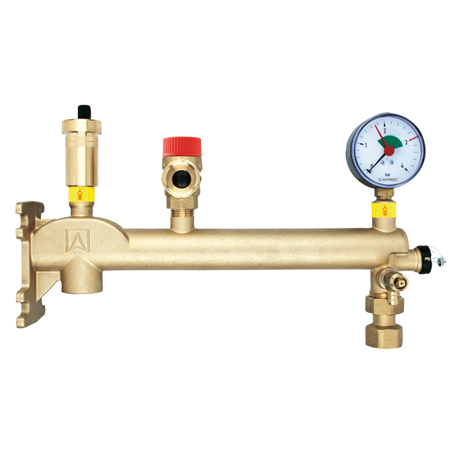 供熱采暖制冷等閉合系統的安全保護裝置,由壓力表、自動排氣閥、安全閥以及絕緣保溫殼組成。壓力表顯示系統管道內壓力,自動排氣閥排出熱(冷)交換介質中的空氣(氣泡),提高熱(冷)交換效率,當系統內壓力超負荷時,安全閥自動開啟卸壓。 |