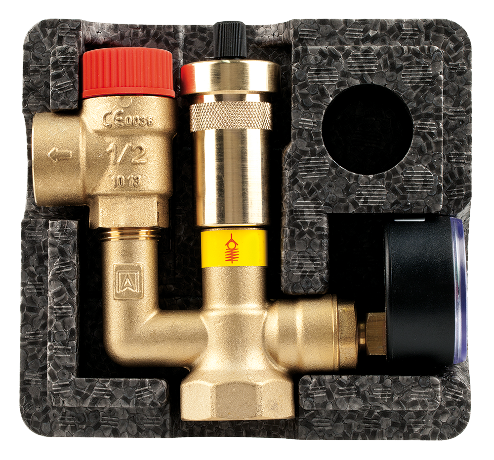供熱采暖制冷等閉合系統的安全保護裝置,由壓力表、自動排氣閥、安全閥以及絕緣保溫殼組成。壓力表顯示系統管道內壓力,自動排氣閥排出熱( 冷) 交換介質中的空氣( 氣泡),提高熱( 冷) 交換效率,當系統內壓力超負荷時,安全閥自動開啟卸壓。 采用自密封安裝閥,便于更換壓力表和排氣閥。 |