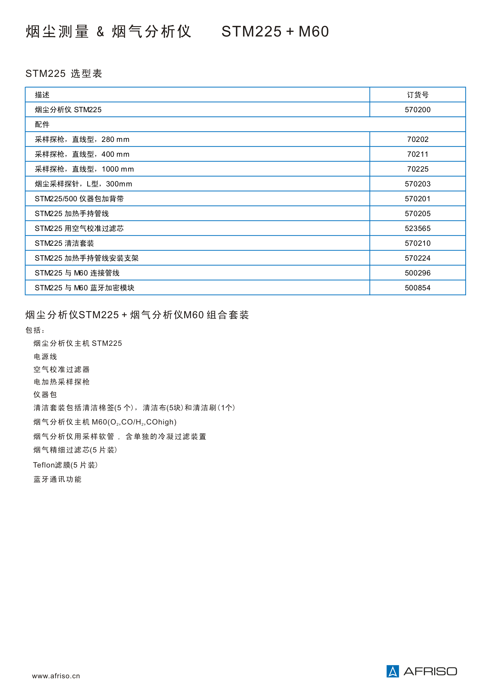 STM225 是一款配置最新工藝和藍牙通訊功能的便攜式煙塵分析儀 , 激光測量原理 , 可實時讀取粉塵顆粒物的濃度。激光光源無損耗、壽命長、穩(wěn)定性和精確度俱佳。 STM225 由測量主機和取樣系統(tǒng)組成 , 儀器內(nèi)置的雙光束測量系統(tǒng)分別集成在兩個單獨的測量腔室內(nèi),分別用于測算煙氣中精細粉塵和較大顆粒物粉塵的濃度。每次測量時間持續(xù) 15 分鐘,并將自動計算的平均值顯示在屏幕上。 M60 廣泛適用于各種燃料的燃燒和工業(yè)鍋爐系統(tǒng),以及火力發(fā)電廠脫硫脫銷工程的煙氣檢測等。尤其是您測量固體燃料系統(tǒng)的理想選擇,如:以木材為燃料的燃燒系統(tǒng),在燃燒不完全的情況下煙氣中 CO 的瞬時峰值濃度可達到 40000ppm 甚至更高。 M60 是一款具有流線型設(shè)計的手持式煙氣分析儀,小巧輕便 , 易于攜帶;堅固耐用的保護套背部帶有磁鐵吸附功能,可實現(xiàn)免提操作。儀器最多可配備六種傳感器 (O2、CO/H2、COhigh、NO、SO2、CO2紅外 或 NO2)。TFT彩色顯示屏可同時顯示8行/4行/1行測量值。儀器內(nèi)置五種氣體濃度單位和九種壓力單位, 可滿足不同客戶的需求。內(nèi)置備用空氣沖洗泵, 保護 CO/H2傳感器不中毒,延長使用壽命。另外,儀器還可通過標配的藍牙通訊接口,實現(xiàn)與智能手機、平板電腦及PC間的無線數(shù)據(jù)通訊。 |