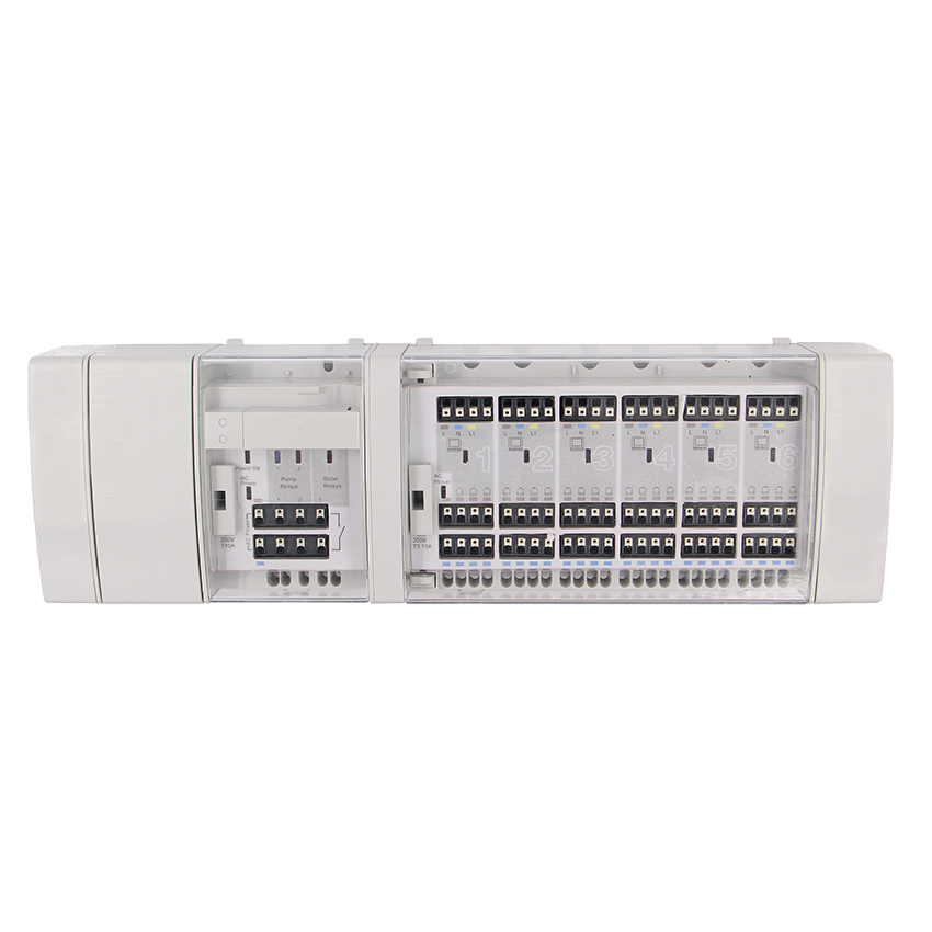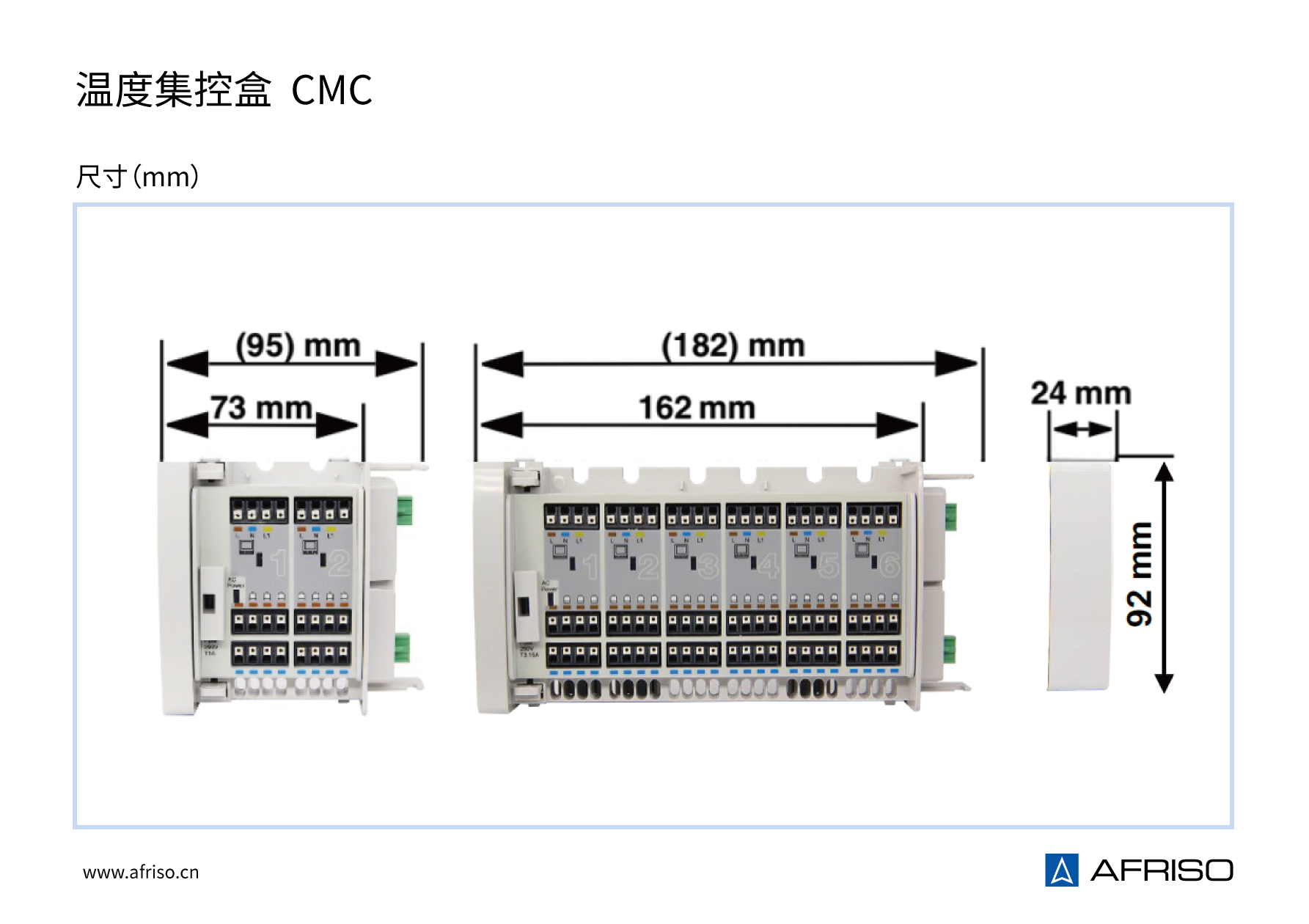 CMC 的基本配置包含一個基礎模塊 BMC 、至少一個集控器模塊RMC2(2 路模塊) 或 RMC6(6 路模塊)。 基礎模塊 BMC 功能:供電;循環泵及熱源的控制 集控器模塊RMC2/RMC6 功能:通過連接房間溫控器和電熱執行器控制集水器支路的啟停 |